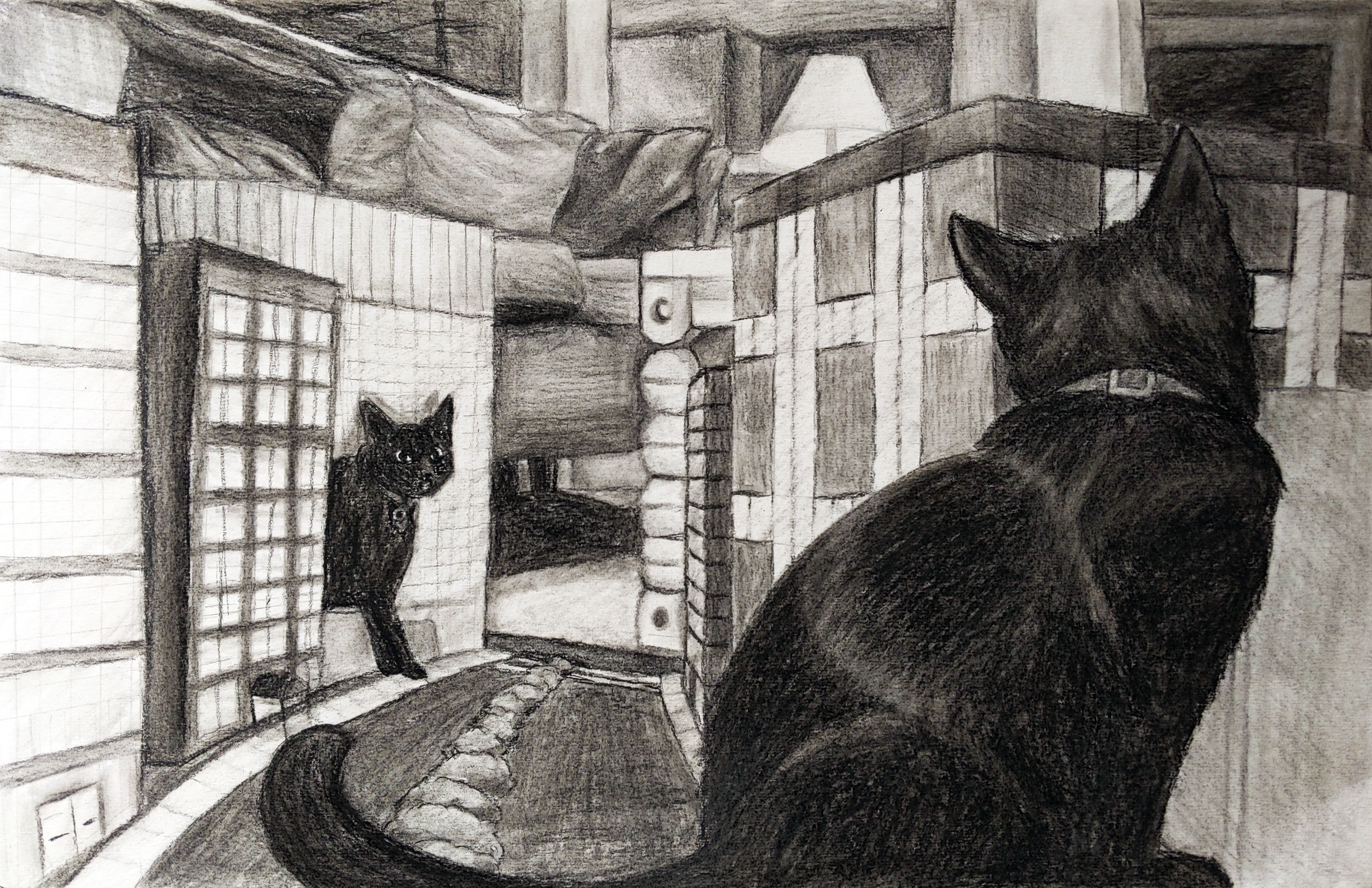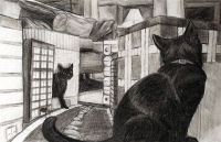 | Small City, Big Kitty - charcoal on paper |