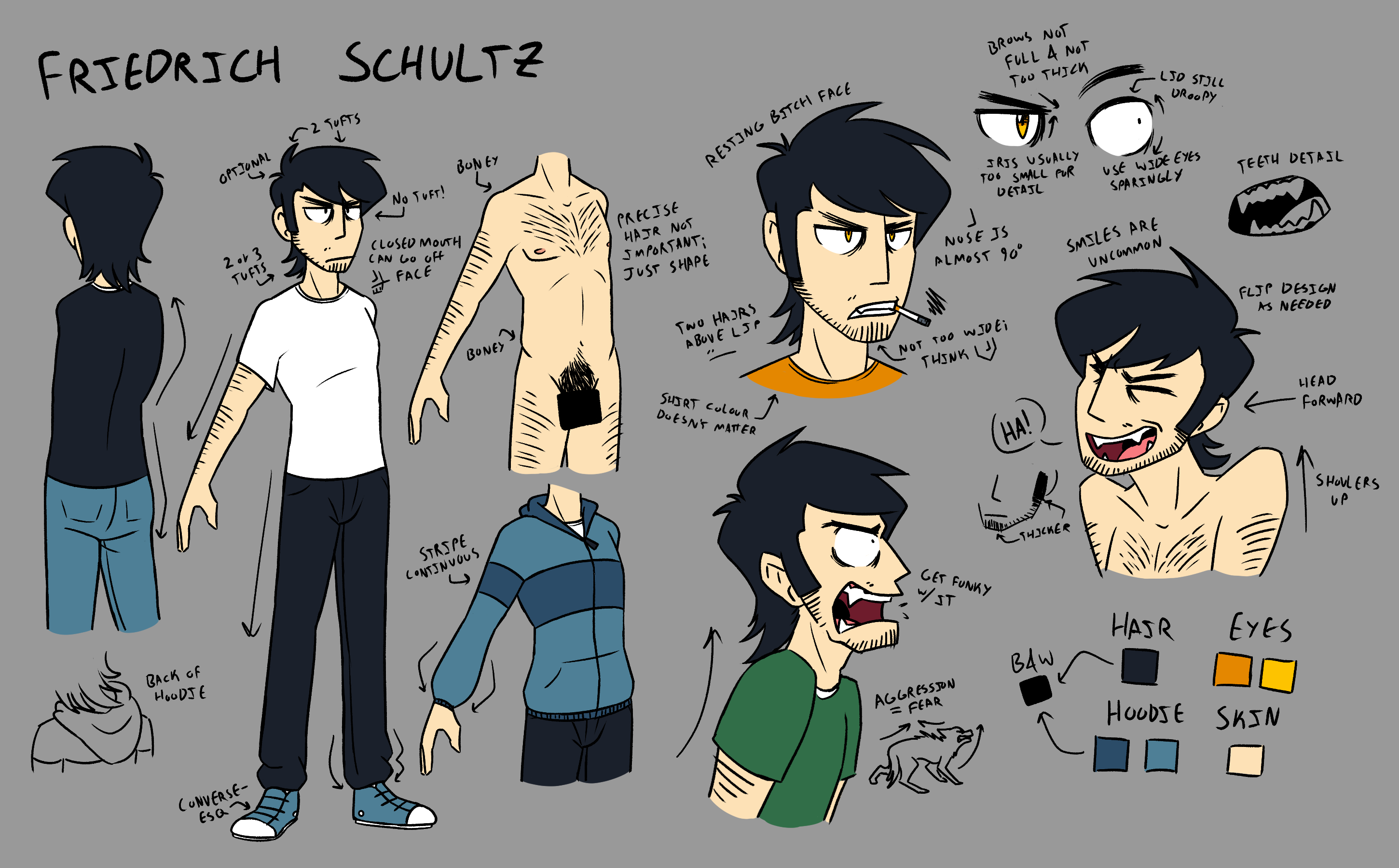 Early concepts for what would become my ongoing music project CALIICO, which was originally envisioned as a more traditionally told story. I chronicled my entire design process of the protagonist, Caleb.